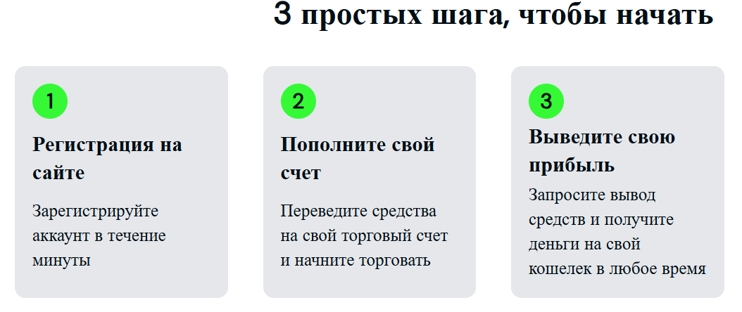 Начать зарабатывать можно после регистрации и пополнения платежного счета, при этом у брокера нет выбор типов аккаунта для проведения сделок.