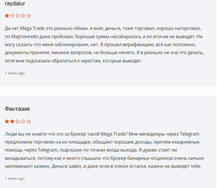 - Негативные отзывы в сети указывают на то, что сайт «Мега Трейд 24» – это развод. Брокер имеет довольно сомнительную репутацию и у клиентов к нему есть недоверие.