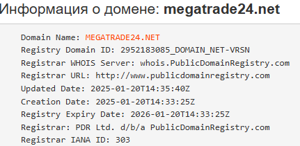 - Судя по возрасту регистрации домена сайта, на момент написания статьи в марте 2025 года, брокер ведет свою деятельность чуть больше месяца. Это говорит о том, что у него нет достаточно опыта и профессионализма в сфере заработка на трейдинге.