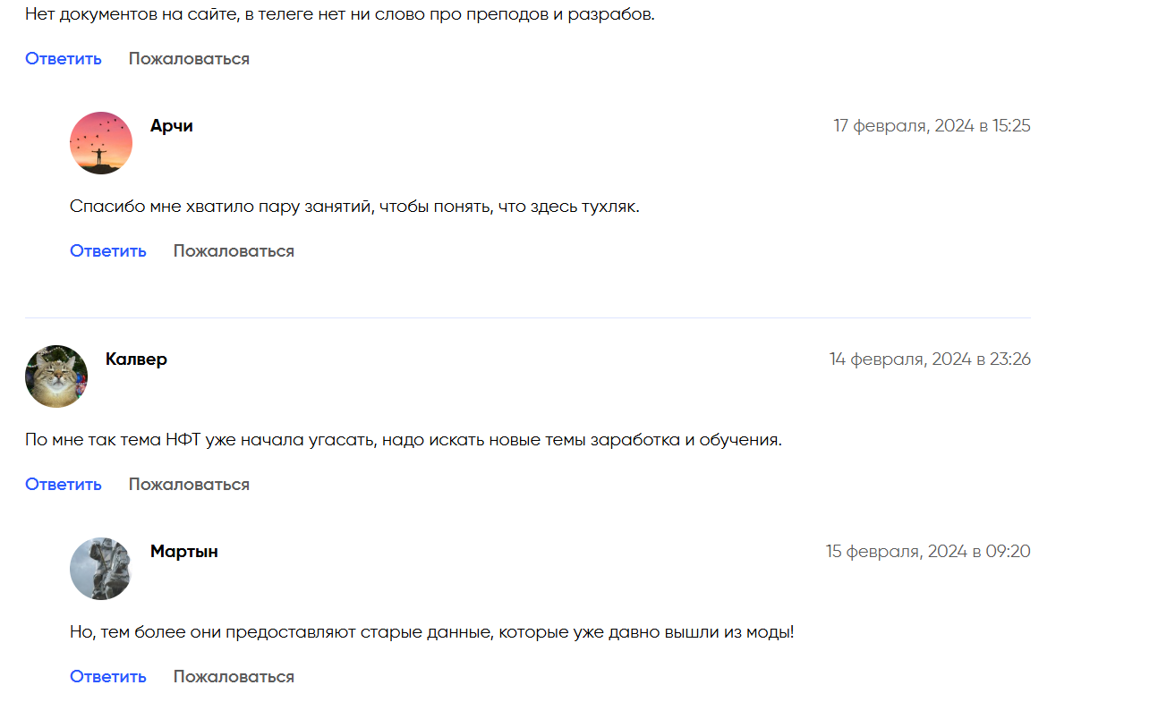- отрицательная репутация, которую формируют негативные отзывы, свидетельствует о низком качестве обучения и пустой трате денег на курсы.