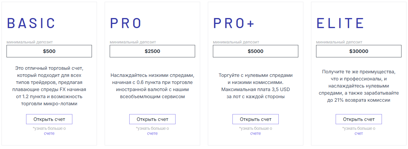 Минимальный депозит у Meriom com составляет $500 за тариф Basic. Максимальные опции получают те, кто внесет от $30 000 и получит тарифный план Elite. Его владельцам обещают минимальные спреды и возможность вернуть 21% комиссии со сделок.