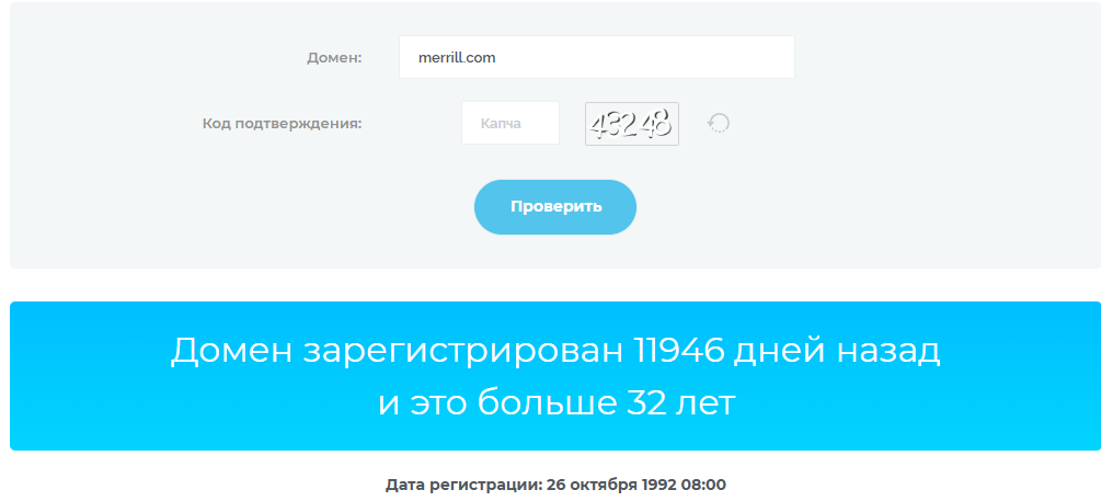 Merrill Lynch Pierce Fenner & Smith Incorporated появилась в 1914 году. Больше века на рынке. Домен merrill com зарегистрировали 26 октября 1992 года. Это подтверждает, что компания давно в интернете.