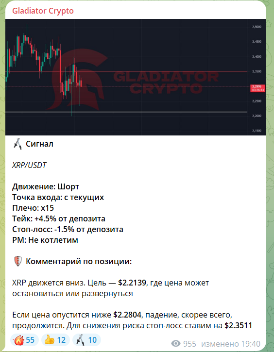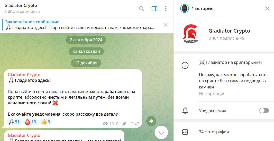 Канал Гладиатор Крипто в Телеграм не вызывает доверия. Автор сохраняет полную анонимность и не показывает своих достижений. Сигналы максимально сомнительные. Статистика прогнозов подгоняется под результат. О негативных прогнозах автор забывает, позитивные репостит и ставит себе в заслугу.
