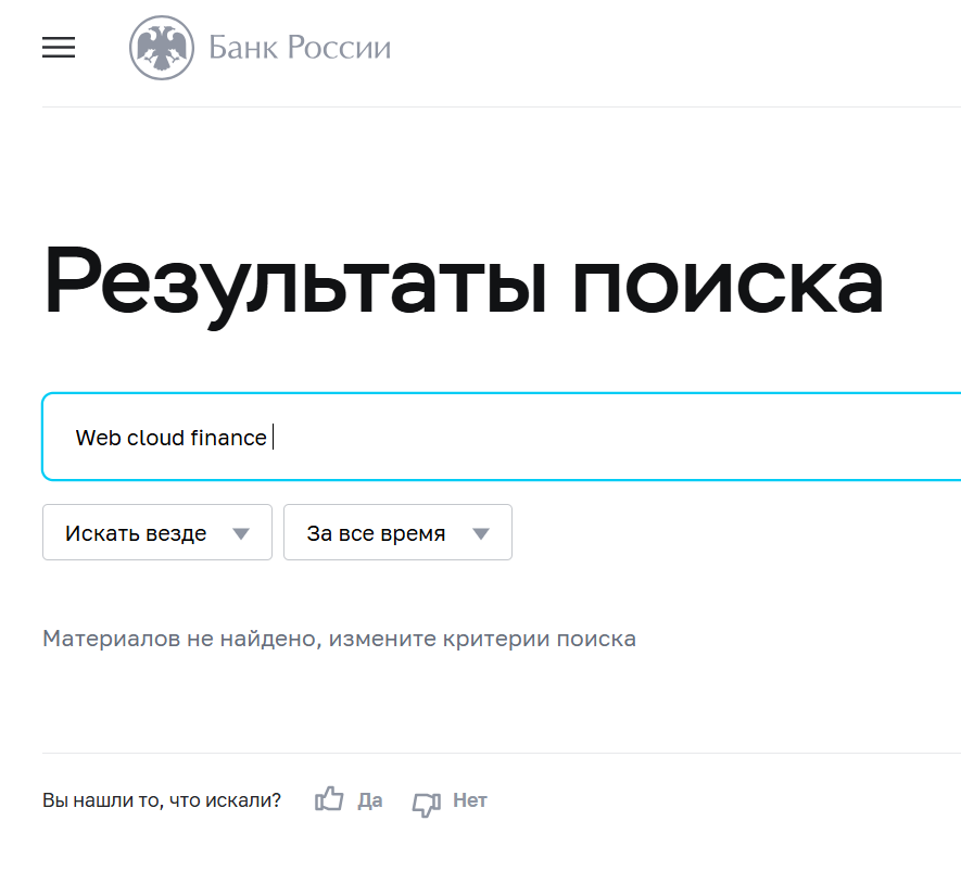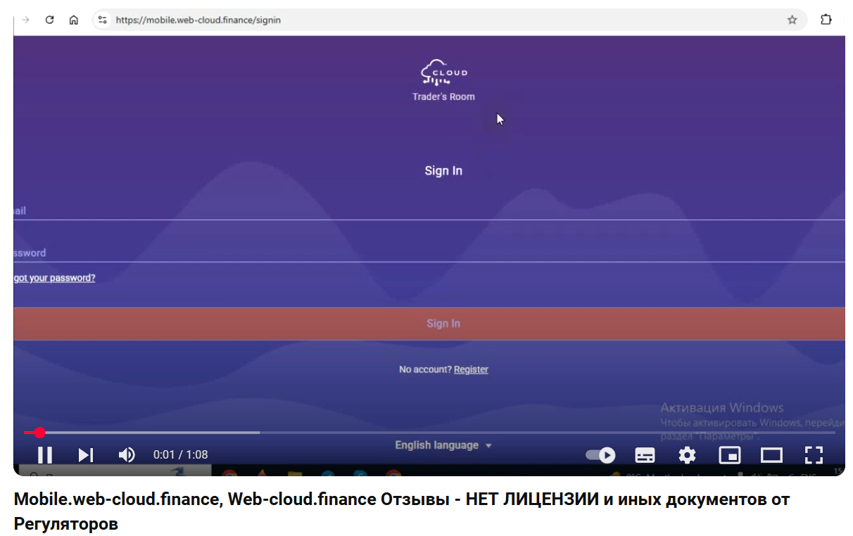 Web cloud finance не демонстрирует на сайте документов или лицензий от любых регуляторов. О юридическом адресе и стране, из которой работает брокер, нет информации, но в Банке России отсутствует какие-либо упоминания о данном брокере.