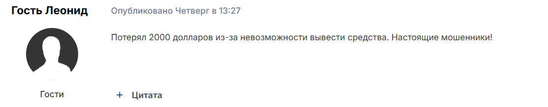 - Комментарии об организации в сети отрицательные, клиенты сообщают о том, что вывести средства с валютного баланса невозможно, то есть, подтверждают отрицательные впечатления о репутации брокера.