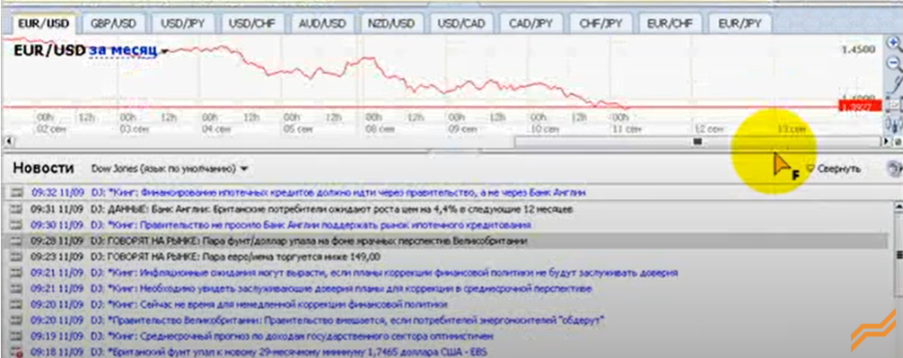 Ну, а внизу размещалась бегущая строка с экономическими новостями, важным элементом в торговле, особенно для краткосрочных трейдеров. Вот в принципе и весь функционал.