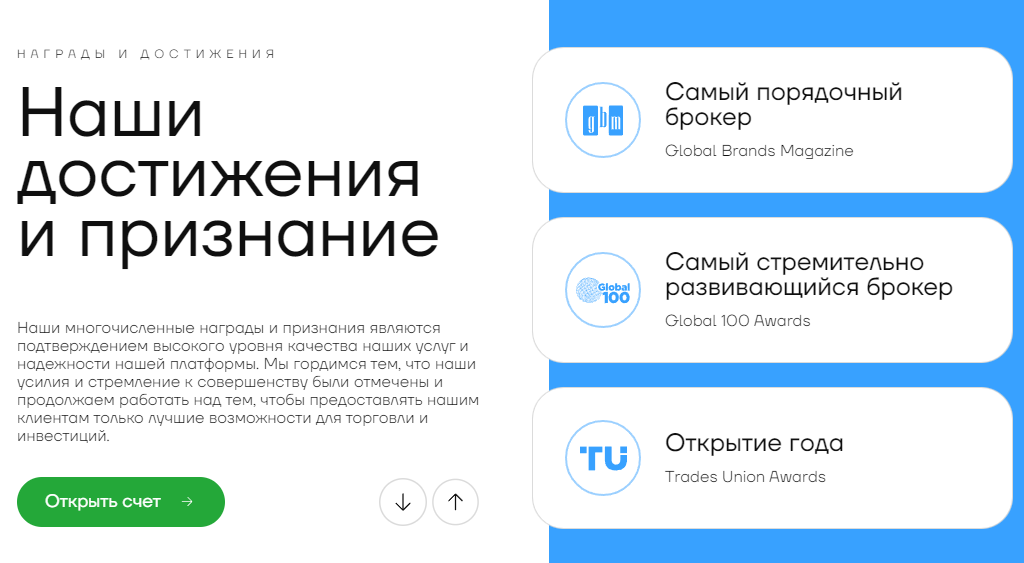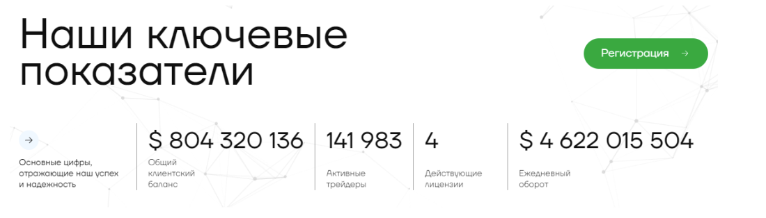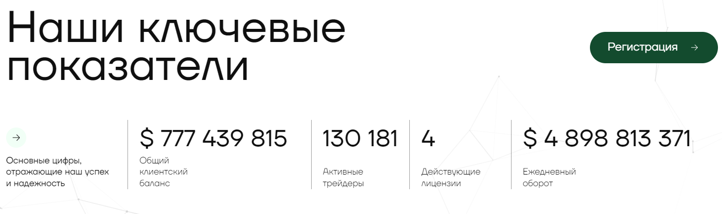 Ну и главное, что разоблачает блок “наши ключевые показатели”, вы можете увидеть ниже. Нам удалось найти такого же лжеброкера, у которого эта часть оформлена абсолютно идентичным образом, лишь немного отличаются показатели. Возможно, это другой ресурс одного и того же создателя, или это просто известный шаблон, который используют скамеры.