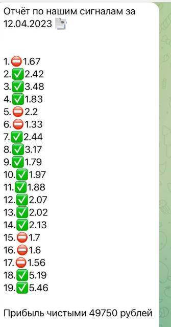 В среднем за день автор сообщает, что зарабатывает в районе ₽50,000 чистой прибыли и говорит, что любой участник сможет получать такие же деньги, игра в рекламируемые им казино. Возможно, что автор просто зарабатывает на процентах, которые получает с рефералов и не заинтересован в реальном выигрыше подписчиков.