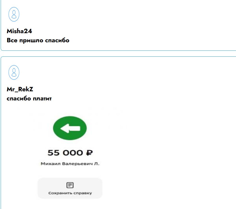 На сайте есть положительные отзывы об инвестициях с Money Gold, где представлены скрины с чеками переводов на карты частных лиц.