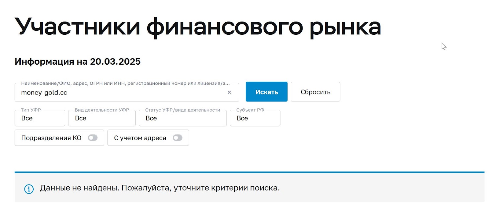 В качестве способа дополнительной связи указан канал в Телеграмме: t me/moneygold2025, на который в марте 2025 года подписано 1,8К человек. Канал был создан 31 января 2025 года, но изначально назывался Digital Money.