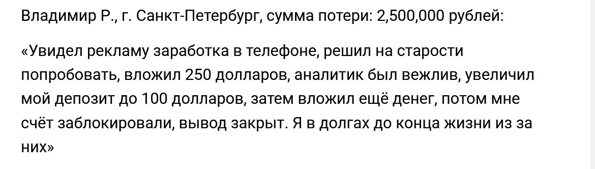В сети мы нашли только отрицательные отзывы, в которых клиенты сообщают об огромных убытках.