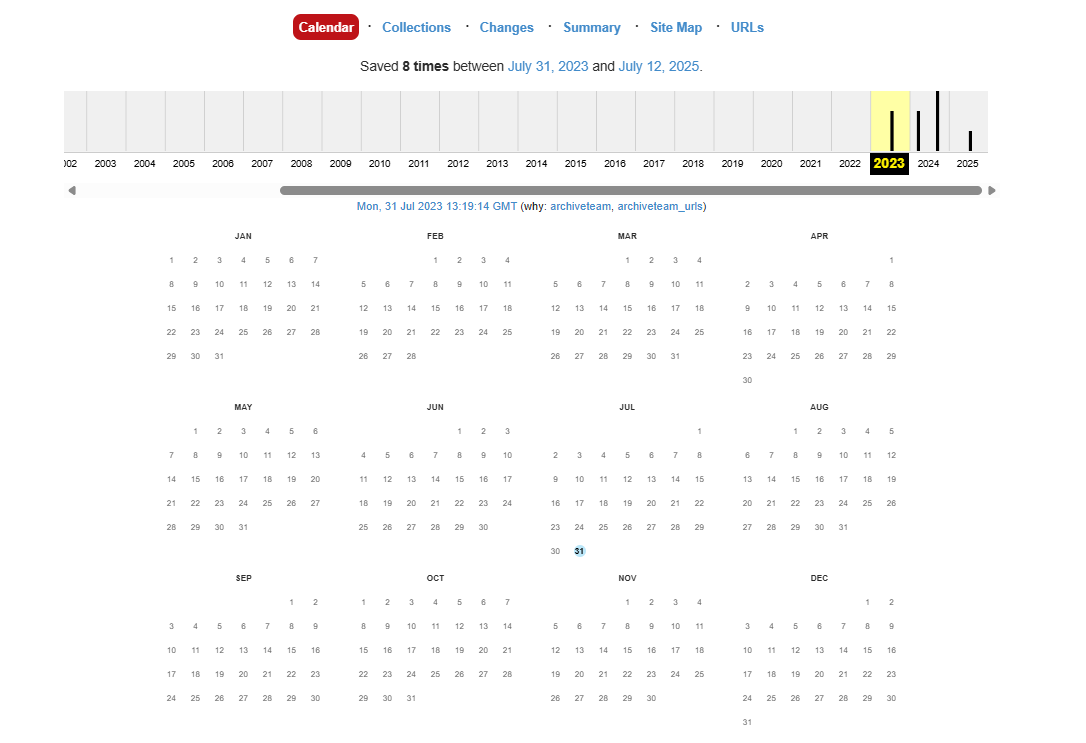 Сервис «ВебАрхив» содержит копии сайта, начиная с 2023 года. Судя по архивным файлам, домен изначально использовался международным банковским терминалом Money Pay и не принадлежал третьим лицам.
