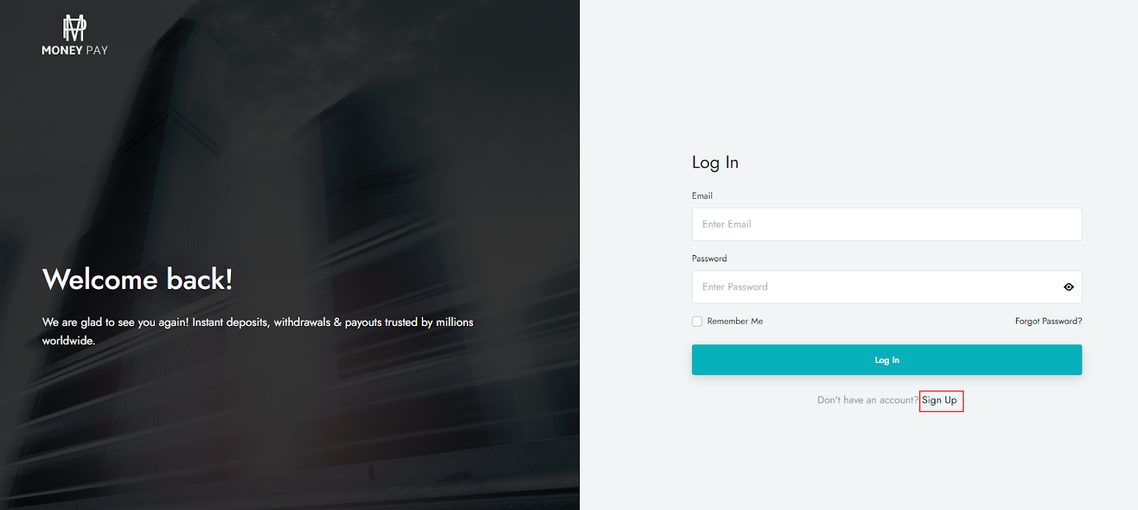 Зарегистрировать счет в «Мани Пэй» можно, перейдя на главную страницу и нажав на Sing Up.