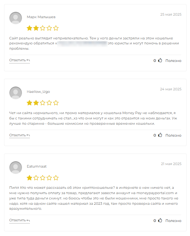 Сервис MoneyPay не слишком популярен в интернете, мы наткнулись на несколько отзывов о проекте. Один из пользователей заявил, что сайт ему кажется непривлекательным, а деньги на кошельке могут застрять.