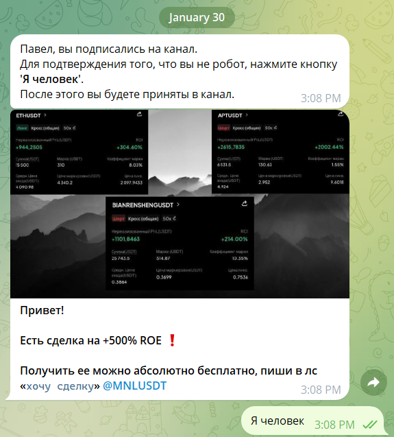 В описании к телеграмм-каналу специалиста указано, что площадка призвана научить клиента управлять своими сделками и не зависеть от чужих решений. Сообщество «Монополист» закрытое и после подачи заявки пользователю необходимо пройти капчу и подтвердить, что он человек через специального бота. При возникновении проблем или за получением бесплатной сделки рекомендуется писать автору проекта с ником Mnlusdt