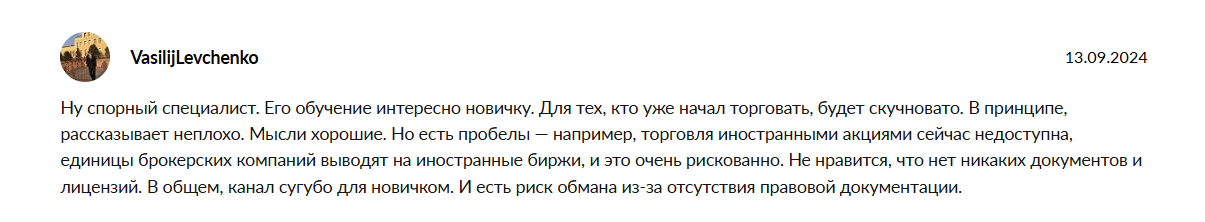 Положительных комментариев от довольных инвестиционными курсами людей в сети нет, но есть множество негативных, обвиняющий Игоря в мошенничестве.