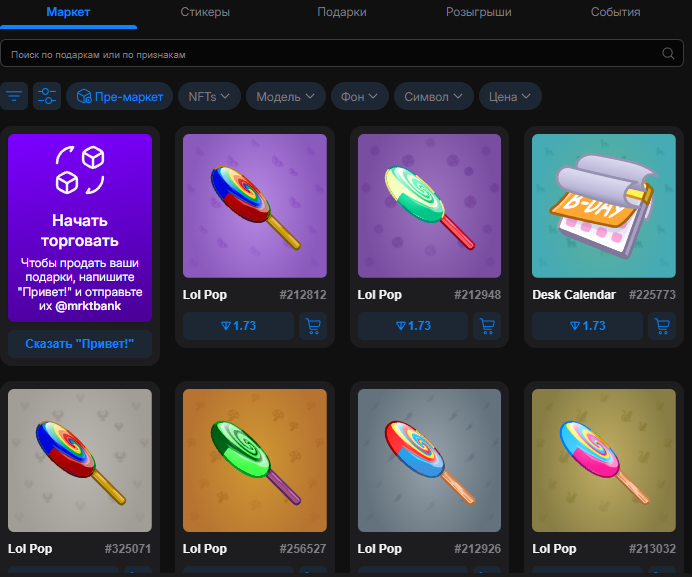 мркт бот подарки тг