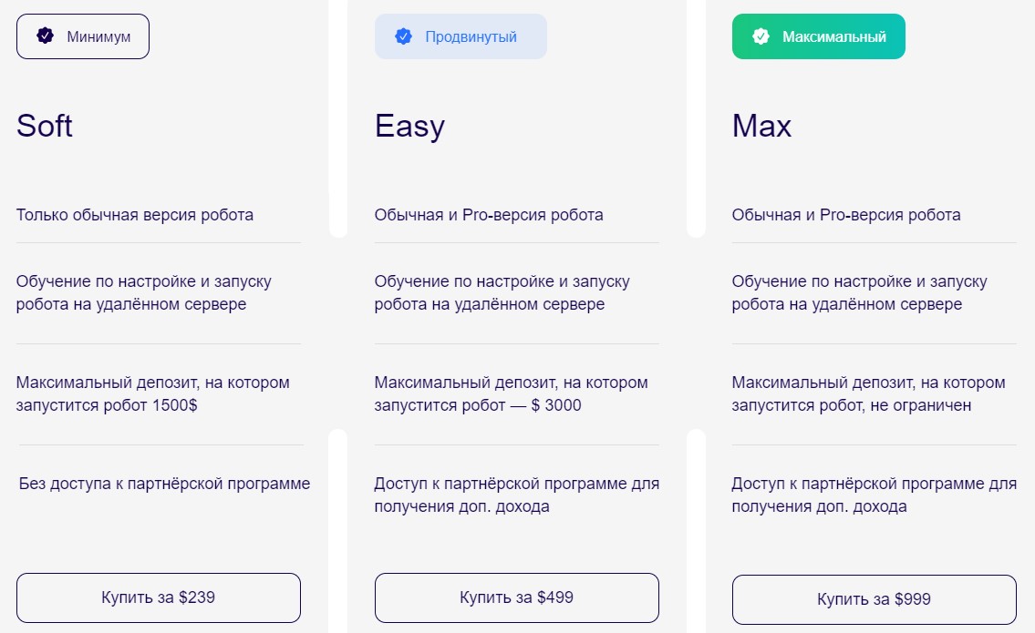 Отдельно МС БОТ не продается: его можно получить только при покупке обучения по работе с ним. Оно стоит от $290 до $999, в таком случае робот будет запускаться на неограниченном депозите, в двух младших версиях обучения размер имеет ограничение в $1500 и $3000. Также предлагают пользователям перепродавать робота, получая партнерский процент.
