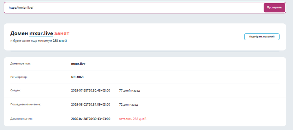 Наша проверка показала, что домен сайта Mxbr Live создан совсем недавно. Но сам брокер отмечает о наличии большого опыта в финансовой сфере. Значит, он вводит клиентов в заблуждение, желая выглядеть в их глазах надежным сервисом.