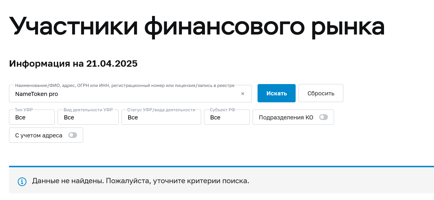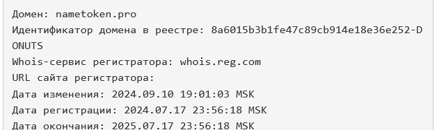 Кто разработал сервис NameToken pro, неизвестно, также нет данных о том, когда компания была внесена в официальный реестр юрлиц. Доменное имя проекта используется с июля 2024 года, а сентябре этого же года прошло обновление.