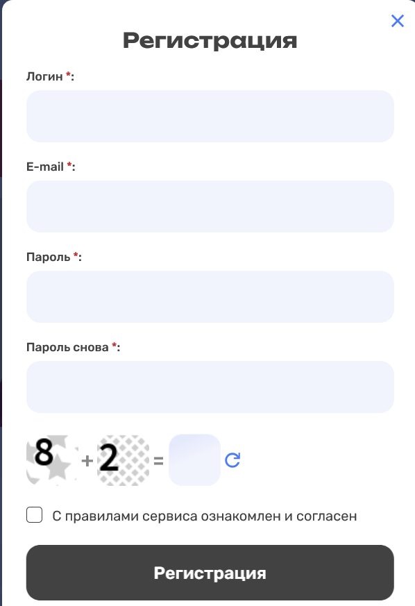 Чтобы совершать операции с обменником Name Token, нужно зарегистрироваться на сайте, заполнив форму.