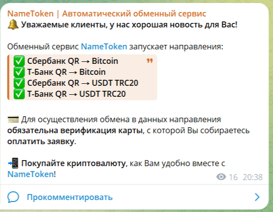 name token обменник