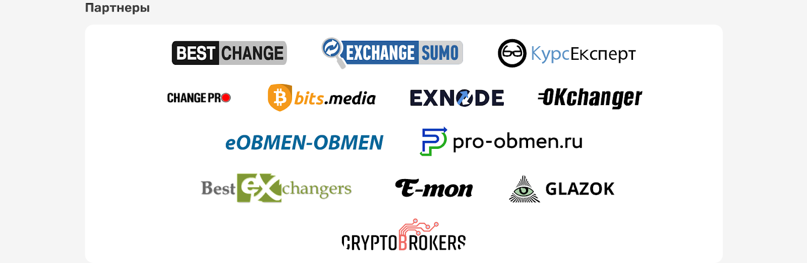 На сайте указаны криптобиржи, с которыми, якобы сотрудничает сервис для более быстрой работы.