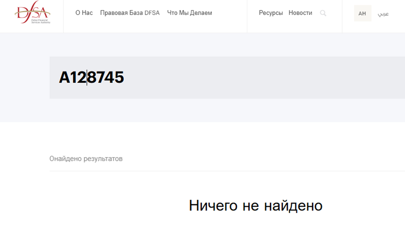 Трейдинг на Navadis сложно назвать безопасным. Платформа хоть и заявляет о наличии двух лицензий, но в действительности они фейковые. Проверка на сайте регулятора Дубая это доказала, документов и лицензий с указанным номером просто не существует.