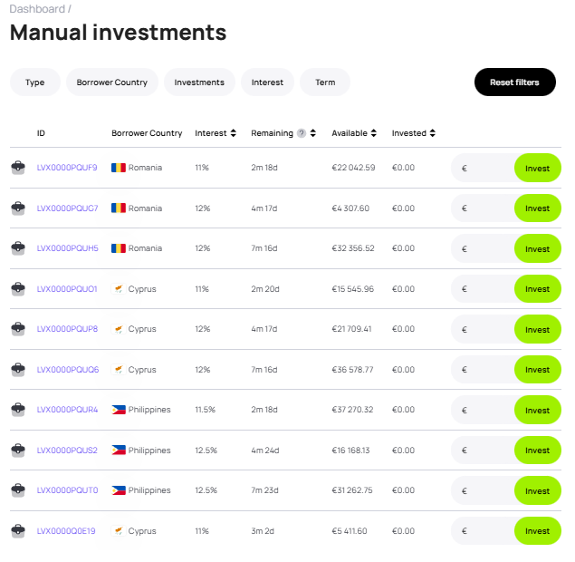 Также клиент может воспользоваться автоматизированным инструментом – в таком случае сделки будут заключаться без участия пользователя. Для этого нужно создать собственную стратегию, выбрав страну получателя средств, условия для инвестирования, цели и процентную ставку. В целом, платформа кажется функциональной и проработанной, при взаимодействии с личным кабинетом нареканий не возникает.