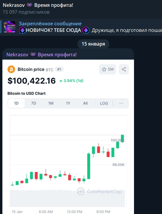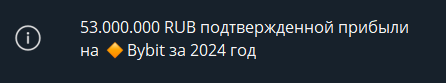 Трейдер ориентирован на криптовалютный рынок, помогает подписчикам покупать и продавать цифровые активы в плюс. В качестве основной торговой площадки он выбрал биржу Bybit. За 2024 год ему удалось заработать прибыль в 53 000 000 рублей. Никаких доказательств этому нет, кроме слов в описании канала.