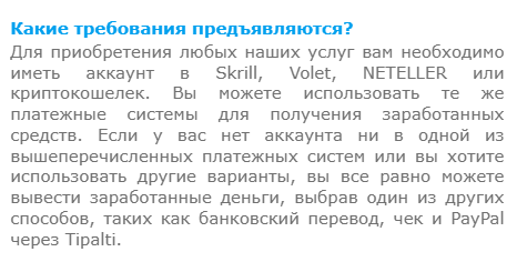 - NeoBux перечисляет конкретные платежные системы – если нет аккаунта, будут проблемы с транзакциями;
