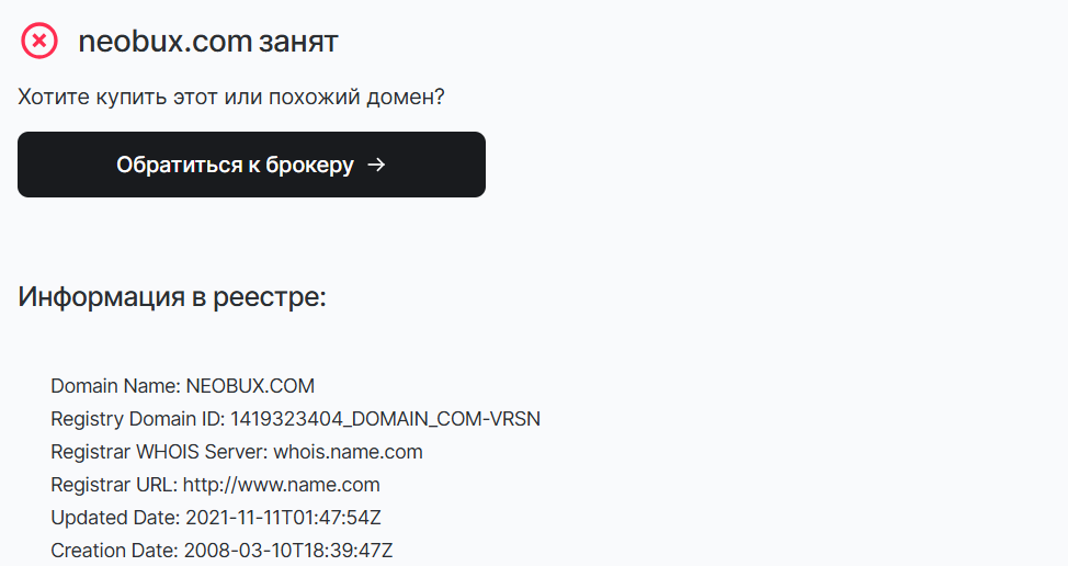 Интерфейс сервиса настраивается на несколько языков, включая английский, немецкий, французский и пр. Русского при этом нет. Утверждается, что проект существует с 2008 года. Проверка показала, что сайт NeoBux com действительно был зарегистрирован 10.03.2008, но есть данные и об обновлениях за 11.11.2021.