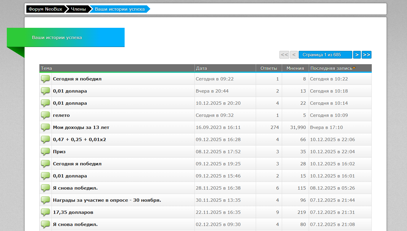 Отзывы о NeoBux можно найти как на самом сервисе, так и в других открытых источниках, но они противоречат друг другу. На форуме на платформе для заработка демонстрируются истории успеха. Практически ежедневно пользователи отчитываются по заработку и рекомендуют как можно скорее зарегистрироваться, чтобы не упустить шанс.