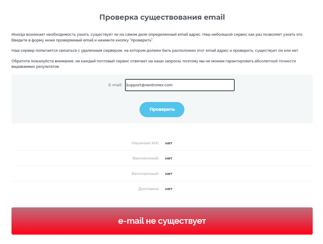 Брокер хвастает тем, что каждый трейдер может получить помощь в круглосуточной службе поддержки. Для связи с компанией указаны номер телефона +447418358428 и адрес электронной почты – support neotronex com. Номер телефона не отвечает, а почта с таким адресом просто не существует. Таким образом, связаться с брокером при возникновении трудностей просто не получится.