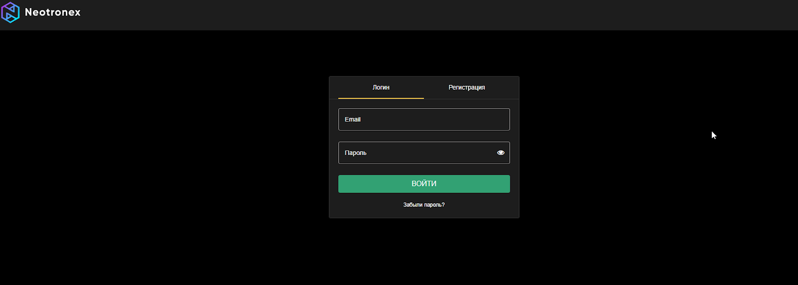Неотронекс работает на двух доменах: neotronex com и Trade neotronex com. Первый ресурс используется в качестве основного презентационного блока. Второй работает в закрытом формате и дает доступ уже непосредственно к терминалу.