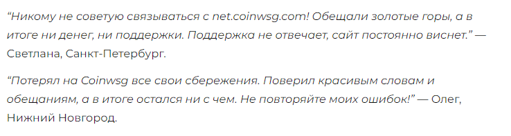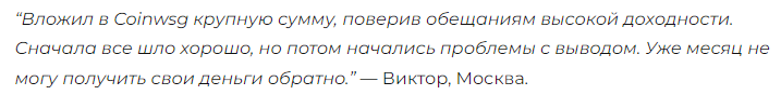 Отзывы от настоящих клиентов о CoinWsg
