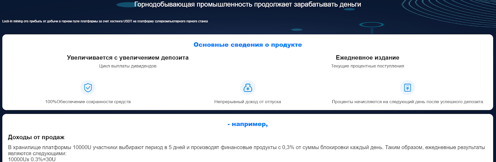 Сервис, якобы, дает возможность инвестировать в горнодобывающую промышленность. Пользователи смогут выбрать количество дней, на которое они вложат свои финансовые инвестиции. Основатели CoinWsg утверждают, что выплачивают 0,3 % от суммы вложений.