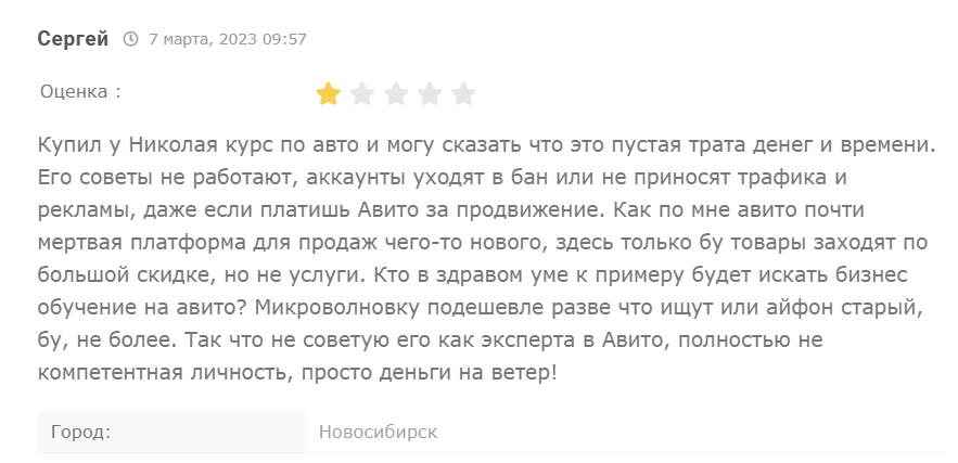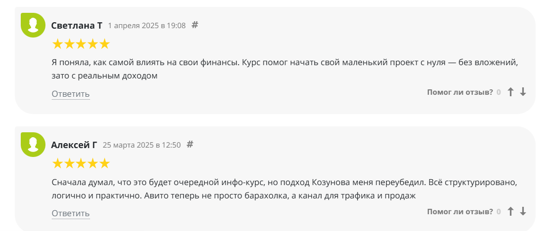 На отзовиках и форумах о Козунове и его курсах высказываются негативно. Отмечают, что его материал бесполезный и не стоит своих денег. Ниже примеры отзывов о курсах Николая от его реальных учеников: