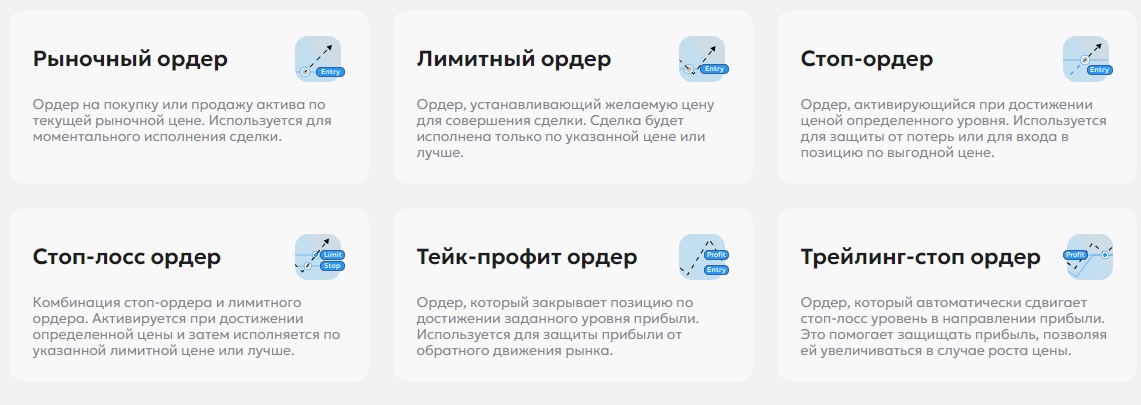 - различные типы ордеров.