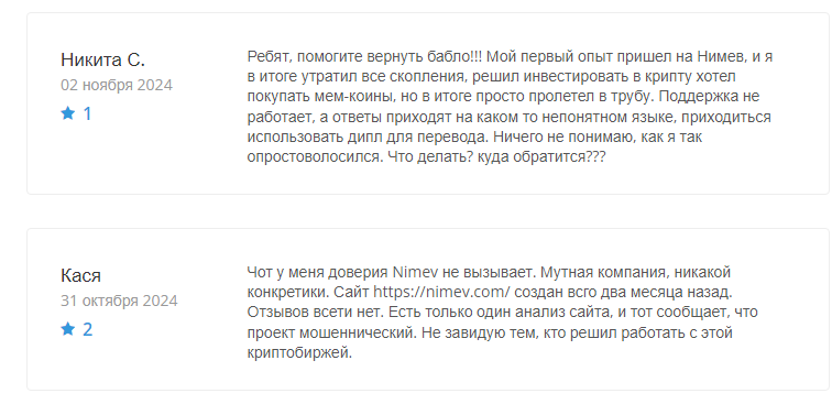 - Компания Nimev com имеет только негативные отзывы, а значит, пользователи могут потерпеть убытки и столкнуться с большими рисками потери средств.