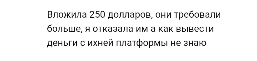Каждый комментарий является негативным и дает понять, что работники сперва заманивали клиентов, предлагая им большую прибыль за внушительный взнос, а уже после этого переставили выходить на связь.