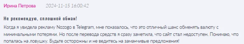 - негативные отзывы о nozogo com – указывают на высокие риски потери денег без возможности возврата;