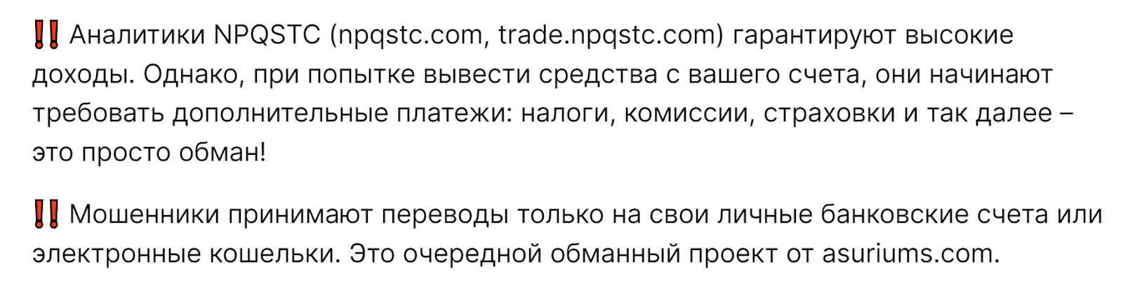 Отзывы о Npqstc com: почему называют мошенниками и скамом?