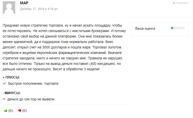 Таких отзывов в сети больше всего, что вызывает большие сомнения в добросовестности торговой площадки.