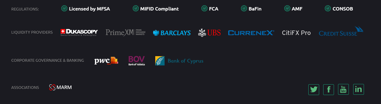 Сама организация зарегистрирована в оффшорной зоне Мальты. Это не лучшая характеристика для брокера, так как исторически такими местами пользуются всевозможные мошеннические конторы.