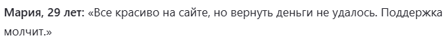 Таким образом, обратная связь от клиентов площадки в сети есть только негативная, а положительных отзывов нет даже на самой платформе.