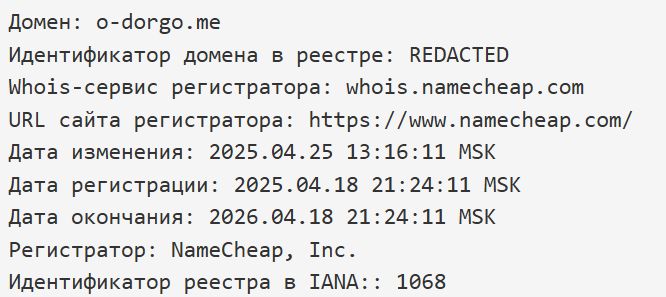 Домен O Dorgo me зарегистрирован 18 апреля 2025 года, совсем недавно.