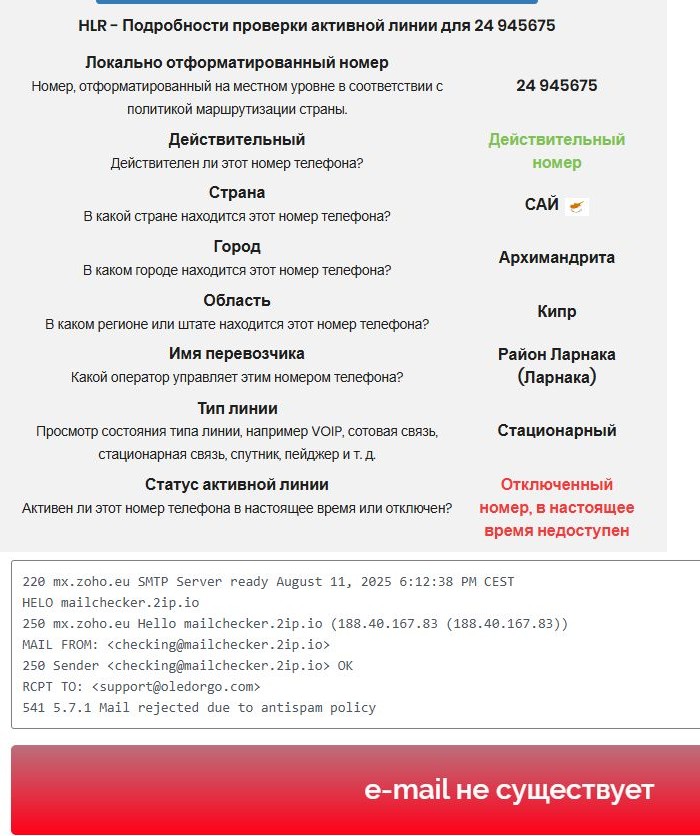 По данным проверки номер недоступен, а почты не существовало вовсе.