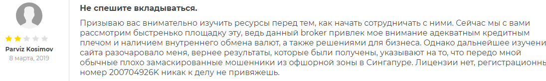 - Компания работает без лицензии. В случае проблем и споров клиенты не смогут найти защиту у регулирующих органов.
