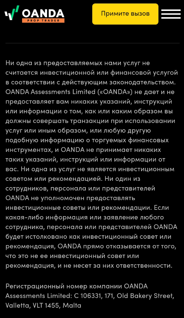 На официальном сайте Proptrader Oanda com из контактов клиенту доступны только адрес регистрации на Мальте и форма обратной связи.Как начать торговлю с брокером